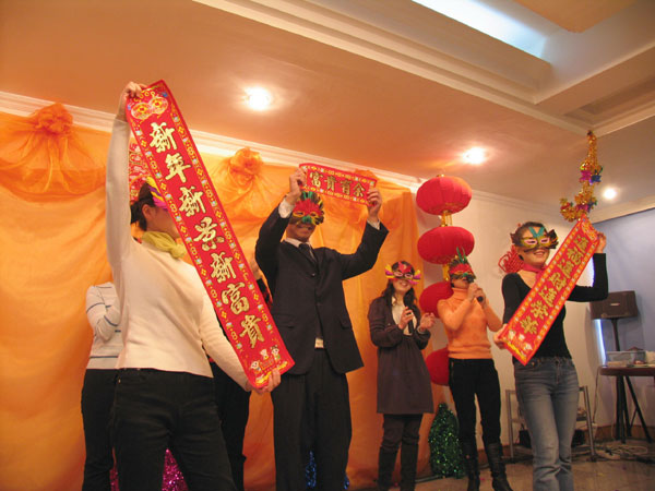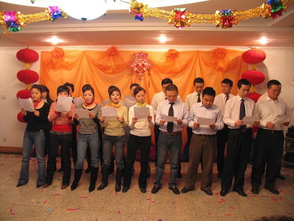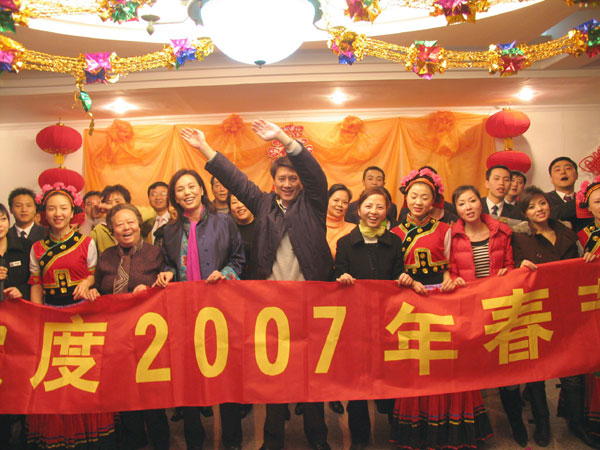 为迎接新春的到来,让员工过一个开心、喜庆、祥和的春节,公司于二〇〇七年二月十五日举办了2007迎新春联谊会。 本次联谊会一改往年的单一形式,采取丰富多彩的文艺表演形式,各部门员工更是积极参与,员工们载歌载舞、说学逗唱,其乐融融,联谊活动结束后还进行了冷餐会、卡拉OK娱乐等活动。 精彩分呈的文艺表演让大家大饱眼福,感受到了公司领导对员工新年的暖暖问候与祝福;通过本次活动更是充分展示了员工的才艺,并增加了员工之间、员工与领导之间的友谊!