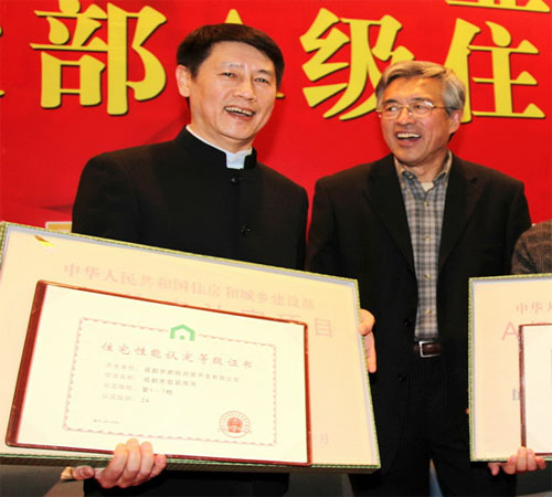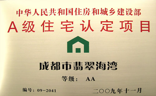由国家住房和城乡建设部主办的“2009住房和城市建设部A级住宅颁奖大会”于2009年11月11日在北京举行,这次会议对推动我国住宅产业现代化、发展省地节能环保型住宅起到积极作用。我公司作为四川省评为A级住宅的三家房地产开发企业之一也受邀前往参加,公司董事长代表企业在颁奖大会上接受了建设部领导颁发的A级《住宅性能认定等级证书》和荣誉奖牌。